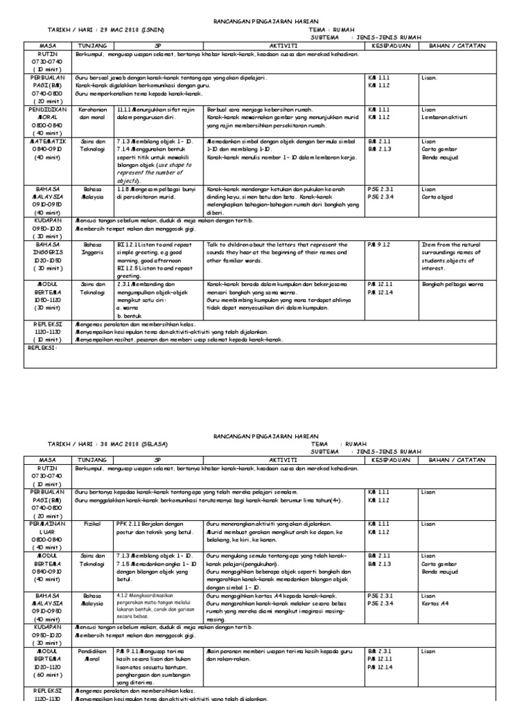 Related : Contoh Rancangan Pengajaran Harian Muzik Prasekolah - Report rancangan pengajaran harian prasekolah..