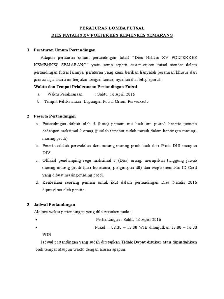169475930 Peraturan Pertandingan Futsal Terbaru from image.slidesharecdn.com Futsal adalah sebuah permainan bola yang dimainkan oleh dua grup yang setiap grupnya memiliki jumlah 5 pemain. Olahraga futsal adalah salah satu olahraga yang paling digemari di indonesia. Selamat bertanding futsal dan jangan berantem … , belajar dulu lewat main playstation juga boleh. Futsal laws of the game 2014/2015 (peraturan permainan futsal 2014/2015), di terjemahkan untuk asosiasi futsal indonesia (afi) pssi, oleh m. Berikut ini merupakan beberapa peraturan permainan futsal yang admin rangkum sesuai dengan peraturan yang dikeluarkan oleh fifa. Permainan sepak bola memerlukan waktu 2 x 45 dengan durasi tambahan 15 x 2 menit untuk sekali main. Futsal saat ini menjadi permainan olahraga yang cukup populer dikalangan masyarakat. Maka dari itu, disini cakbagus akan membagikan tentang materi futsal secara lengkap untuk anda semua.